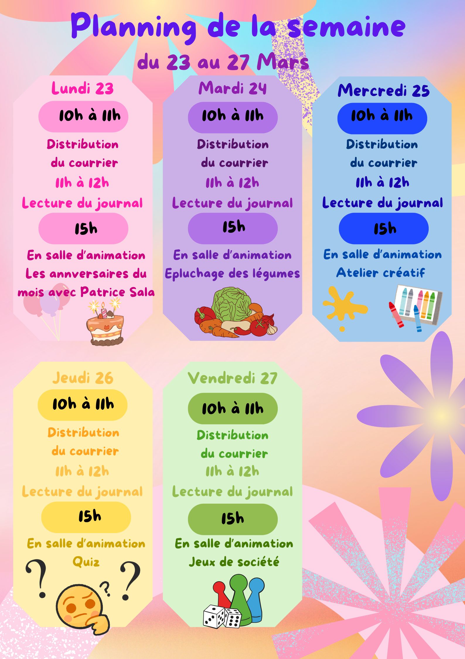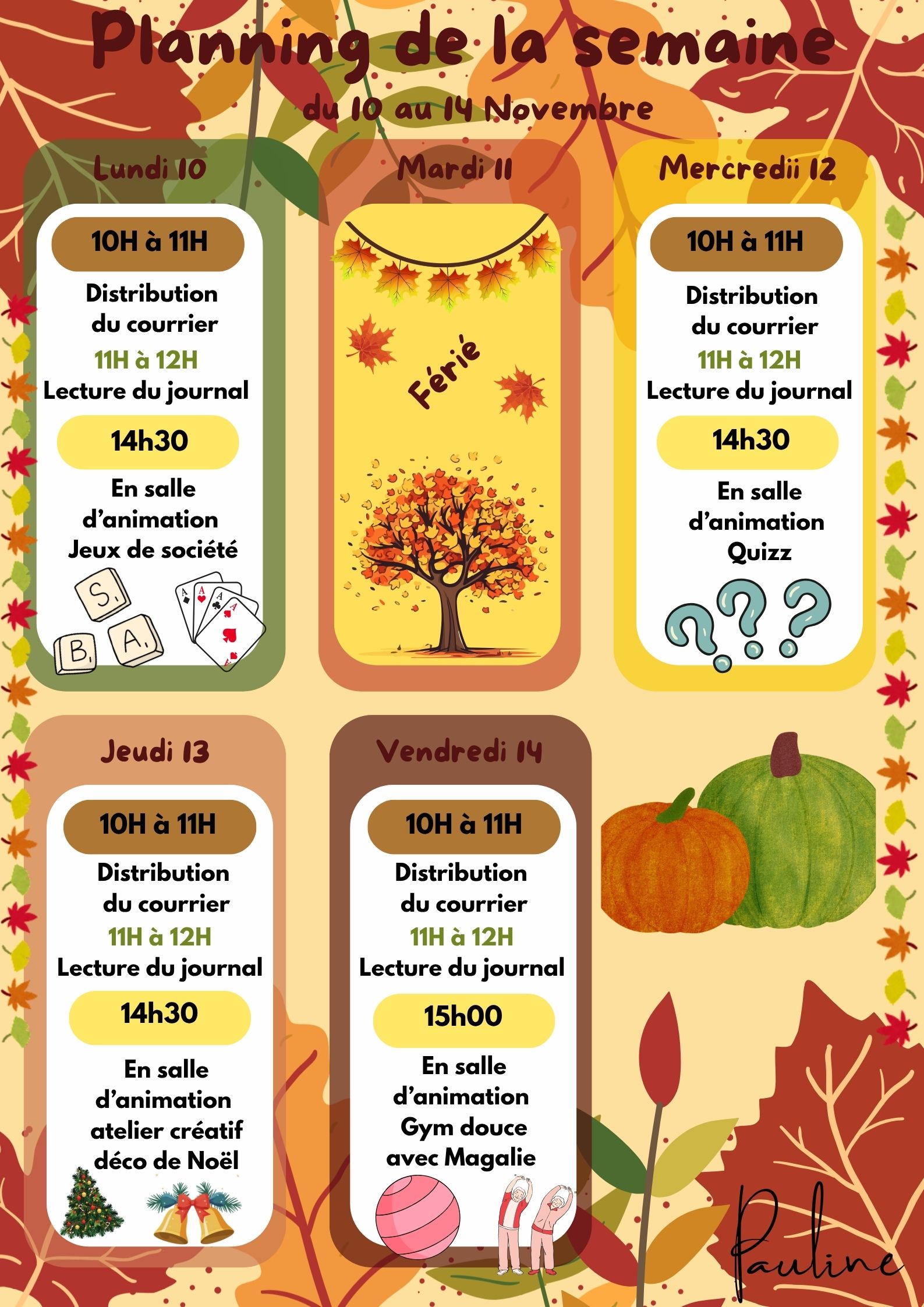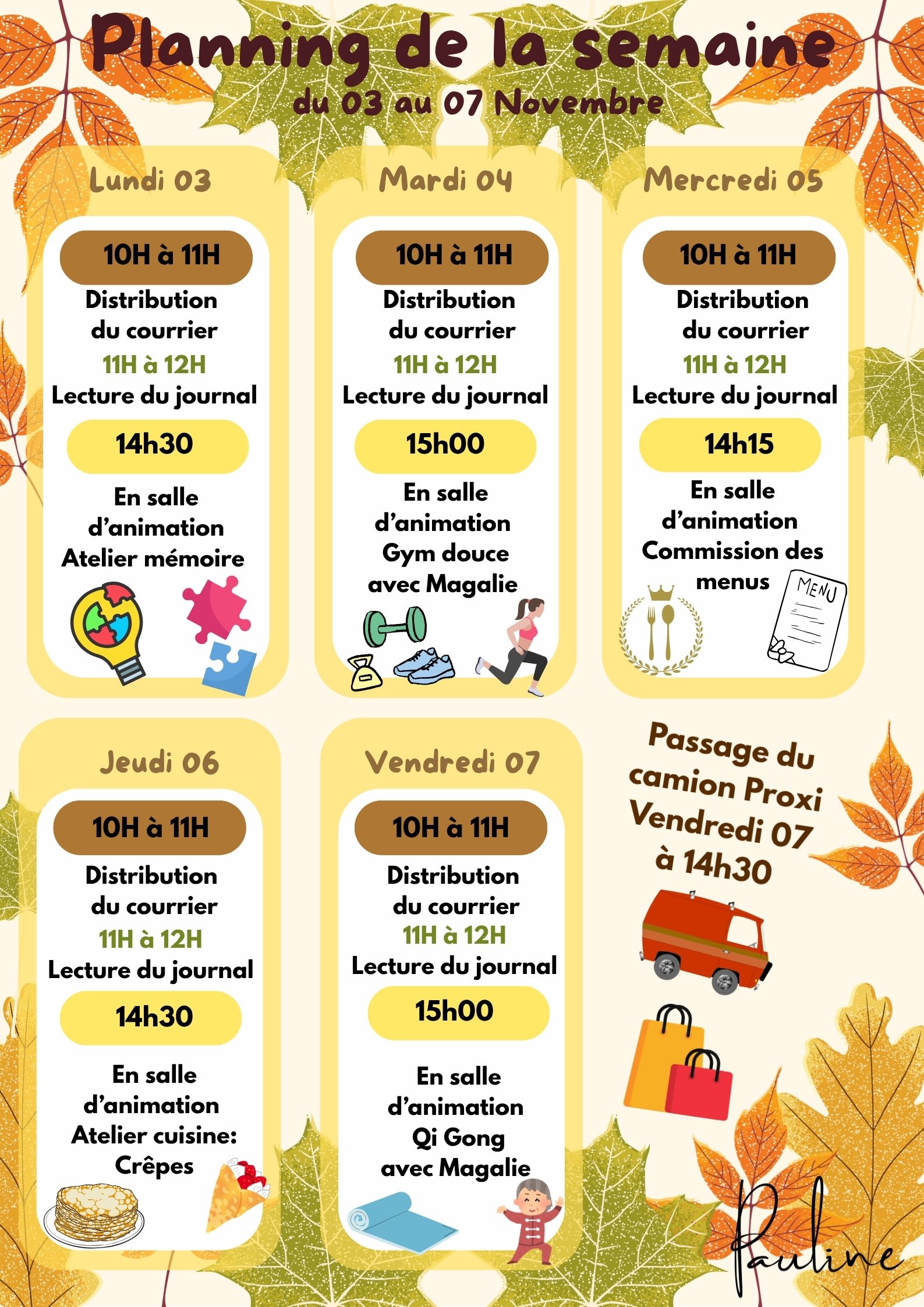 (Il vous suffit de cliquer sur les dates pour afficher les plannings d’activités)