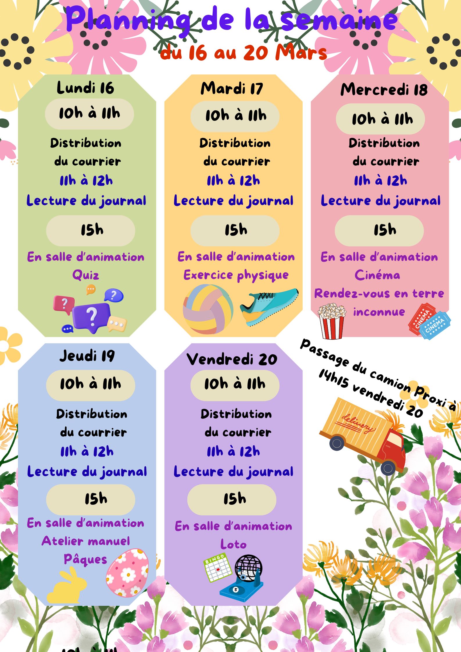 Planning des animations du 16 au 20 mars 2026
